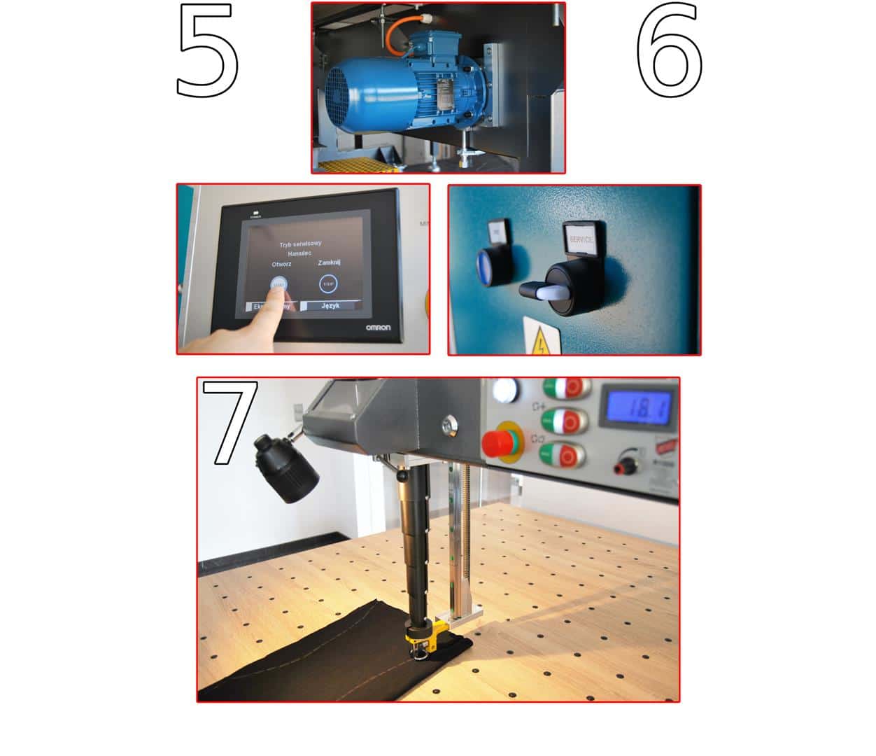 • Säker maskin – nödstopp, skyddskåpor med säkerhetsbrytare, teleskopkåpa över bladet med automatisk höjdjustering, nollspänningsutlösare