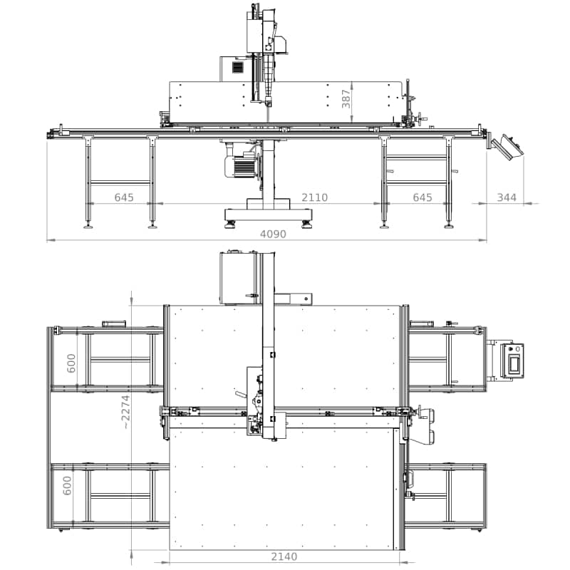 - Utskjut arm / klyvbredd: 1150 mm, såghöjd: 410 mm